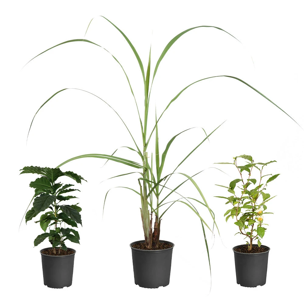 2. Watering: You can water your Arabica Coffee Plant and Cold-Hardy Tea Plant 1-2 times weekly, but the Sugar Cane may need more frequent watering as it likes its soil moist at all times.