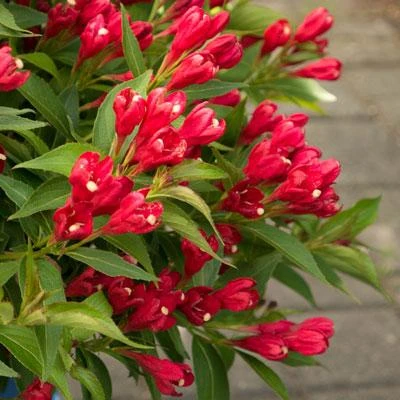 • Plant Crimson Kisses® Weigela shrubs along a sunny walkway to form a brilliant flowering welcome to your home’s guests.